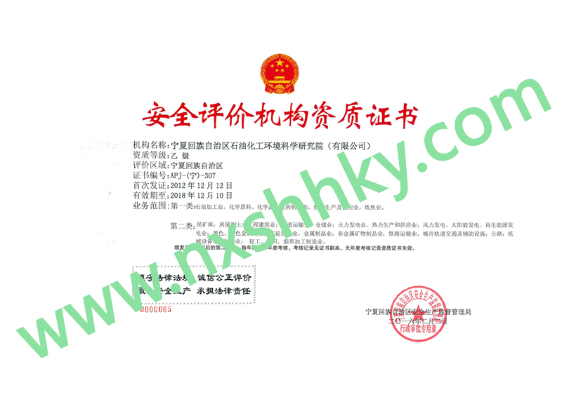 安全評(píng)價(jià)機(jī)構(gòu)資質(zhì)證書(shū)