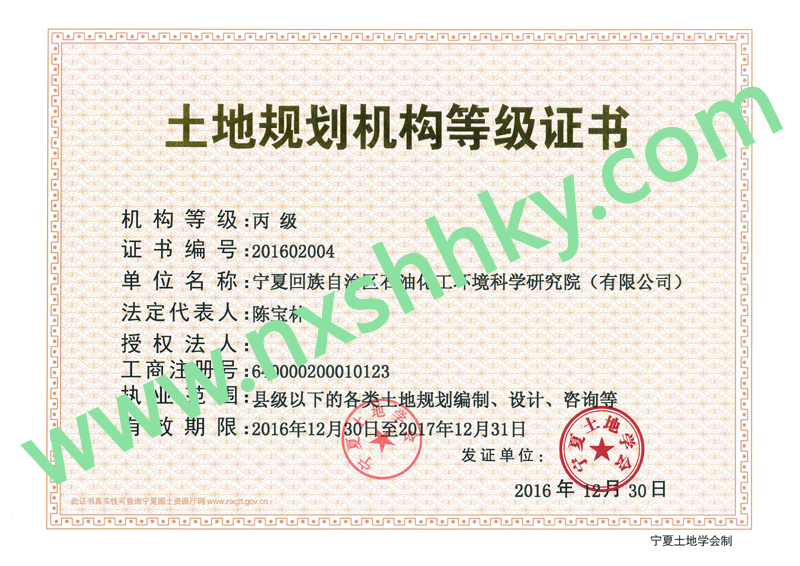 土地規(guī)劃?rùn)C(jī)構(gòu)等級(jí)證書(shū)