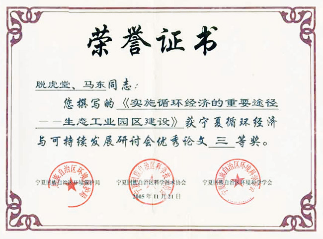 脫虎堂馬東獲寧夏循環(huán)經(jīng)濟(jì)與可